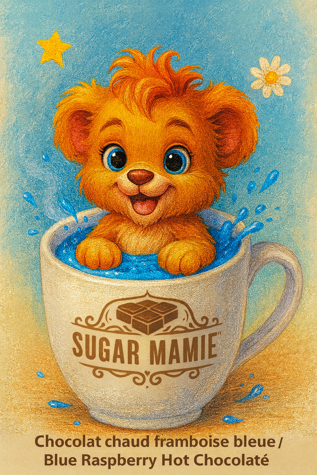 Imaginez une tasse fumante de chocolat chaud onctueux, préparé avec du chocolat blanc. Maintenant ajoutez-y la douceur acidulée des framboises bleues, ces petits joyaux fruités qui explosent en bouche comme une pluie d'été.